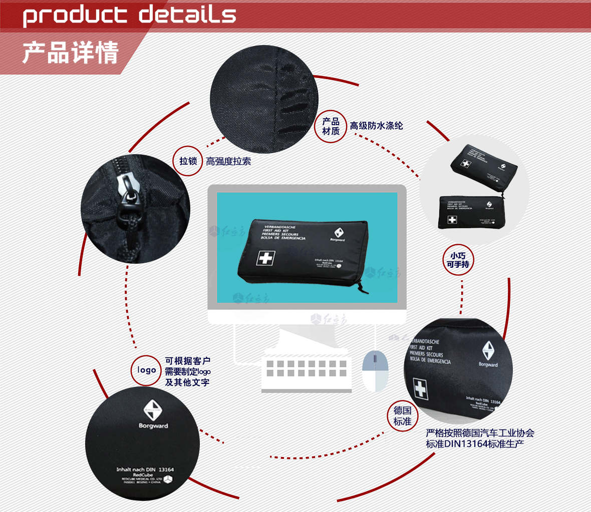 | 型號(hào):車載急救包 | 外包材質(zhì):滌綸 | 顏色:黑 |